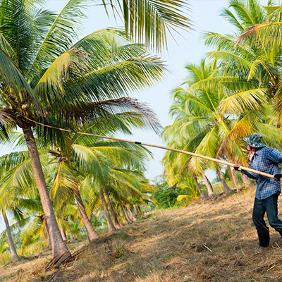 Coconuts are harvested by hand or using long bamboo poles. Farmers select mature coconuts at the right time for best flavor and freshness. After harvesting, coconuts are cleaned, sorted, and packed for local markets or export.